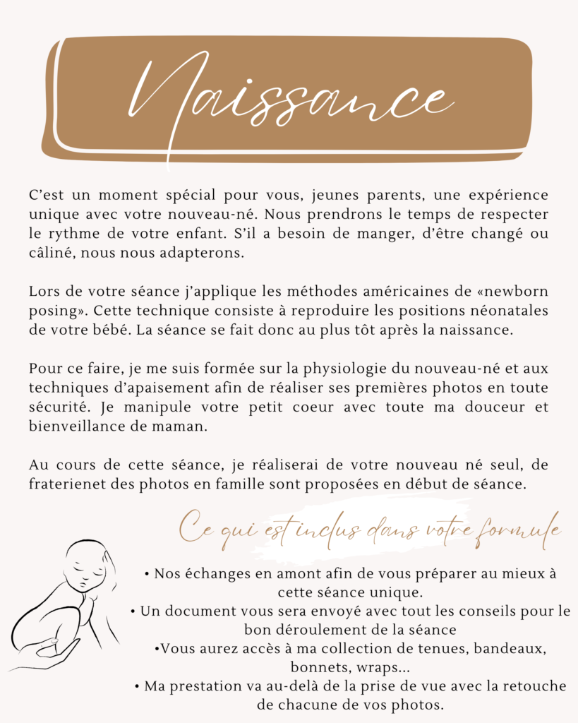 La traditionnelle séance Naissance est sans doute LA séance la plus importante que vous ferez avec votre enfant. Ce petit être changera si vite… J’ai entendu tellement de parents regretter de ne pas l’avoir faite ! Les photos de naissance seront les seuls trésors qui vous permettront de vous replonger dans cet instant magique lorsqu’il aura grandi et que vous serez nostalgique..